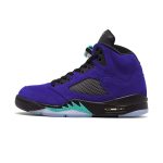 Description The Air Jordan 5 Retro ‘Alternate Grape’ delivers a variation on the silhouette’s classic OG colorway from 1990. The upper, outfitted entirely in purple suede, sits atop a black foam midsole with speckled shark tooth detailing in emerald green. The same hue appears on the lace locks and Jumpman…