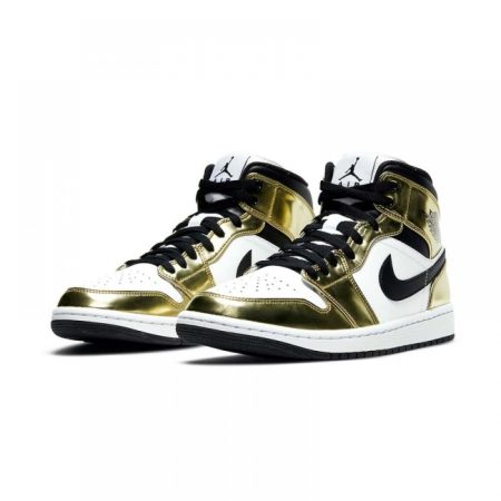 $197.00Original price was: $197.00.$150.00Current price is: $150.00.Description The Air Jordan 1 Mid SE ‘Metallic Gold’ treats the classic silhouette to a luxe makeover, highlighted by a white leather upper with metallic gold overlays and contrasting black hits on the Swoosh and collar. A Jumpman icon adorns the woven tongue tag, complementing a classic Wings logo stamped…